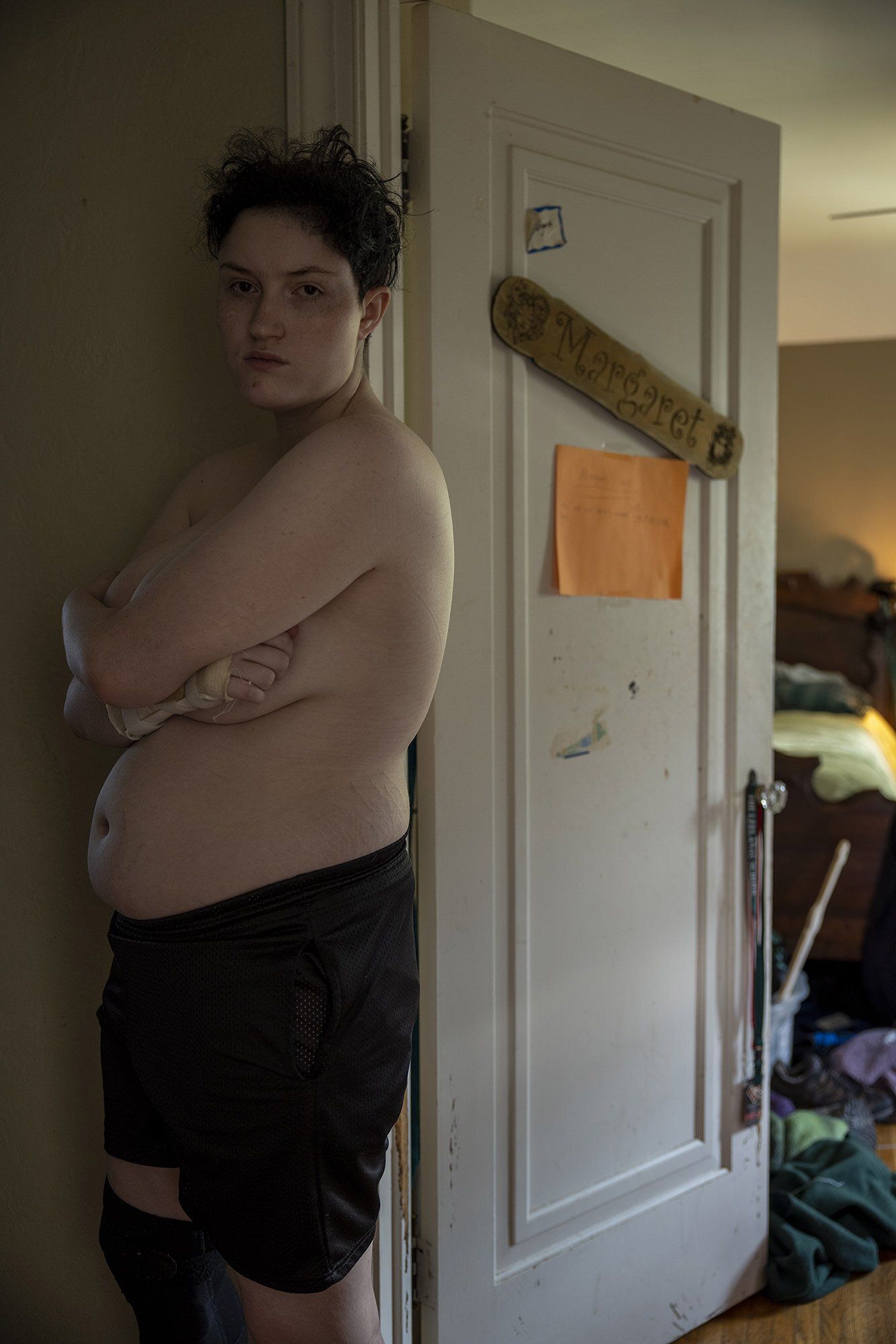In August of 2020, my daughter Margaret announced the new name and non-binary identity as Alex (no pronouns), and while I fully support this, I am learning who the new person is, learning to love who Alex is becoming, and considering my own evolution as a mother. My project, Becoming Alex unfolded over a year during which Alex and I came to understand what our transitions looked like and meant. As a young adult with autism spectrum disorder and countless physical ailments, Alex struggles to exist in a world that seems to run counter to how my child understands it. Along with the gender transition, Alex came into an awareness as an asexual (ace) adult, and this portfolio reflects the search for all these identities. Even after a year of growth, Alex and I are still learning to navigate our relationship, define our roles, and how to claim our place in contemporary society.